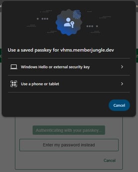 Here are the detailed steps on how members and users can log in to the system. There are two options, depending on whether Passkeys and Easy Login are used or not.