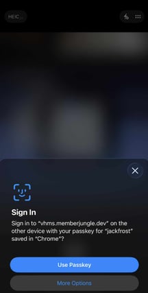 - On your mobile phone. Click the 'sign in with passkey' to proceed. Please follow the next prompt on your device.