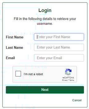 - Forgot Username: On the login screen, select 'Forgot your username?' and fill in the required details. You may also need to complete a reCAPTCHA. Please ensure that you provide the correct details; otherwise, you will not receive an email.