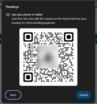 3. If Passkey is enabled, after entering your username, the system will automatically prompt you to use your passkey. Follow the on-screen instructions, including scanning the QR code with your phone or tablet camera.