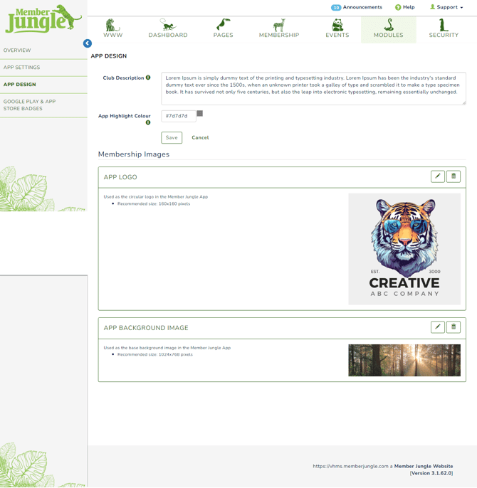 To do this, select the App Settings option from the left navigation in the Member Jungle App Module.