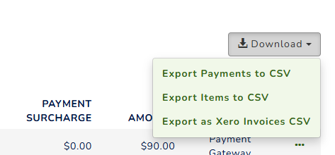 To enable the “Export as Xero Invoices CSV” option, an account code must first be configured in the External/Xero Accounting Code section of your Organisation Settings. This should correspond to the income account in your accounting software where the payment is to be allocated.