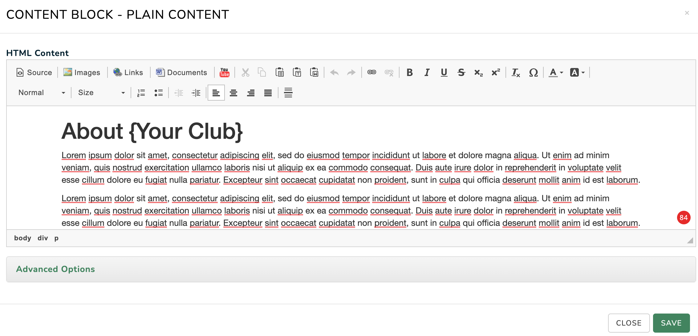 - You can edit the Advanced Options of the content block to add things like: