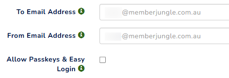 - Allow Passkeys & Easy Login: This functionality provides all users in the system the option to configure Passkeys or OTP when accessing the system. Please see here: How to configure a Passkey, Authenticator App, and enable the 2FA as a Member or User.
