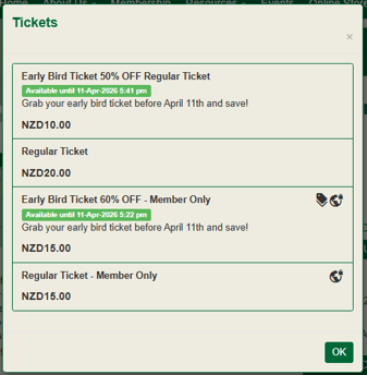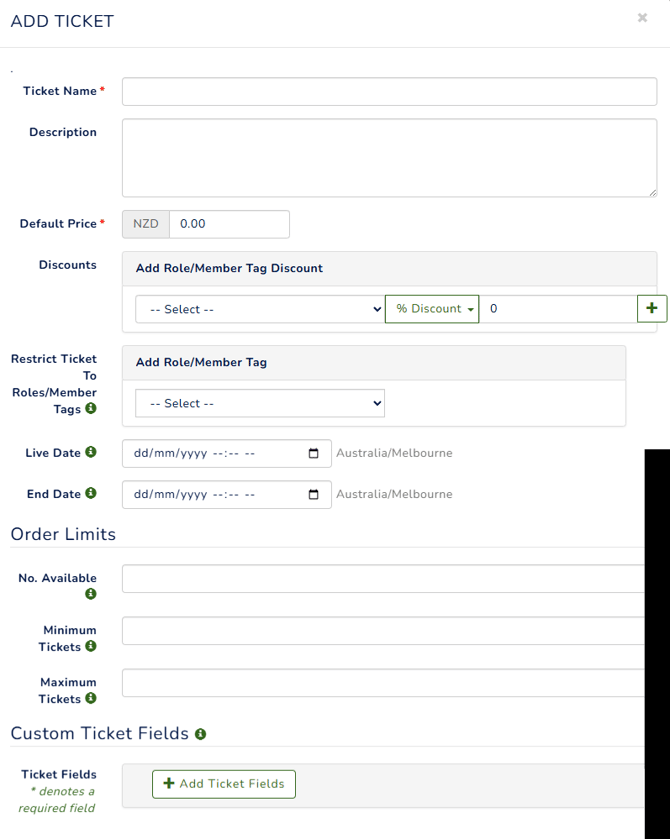 - Max Ticket: You can set a maximum amount that can be sold to a member per transaction.