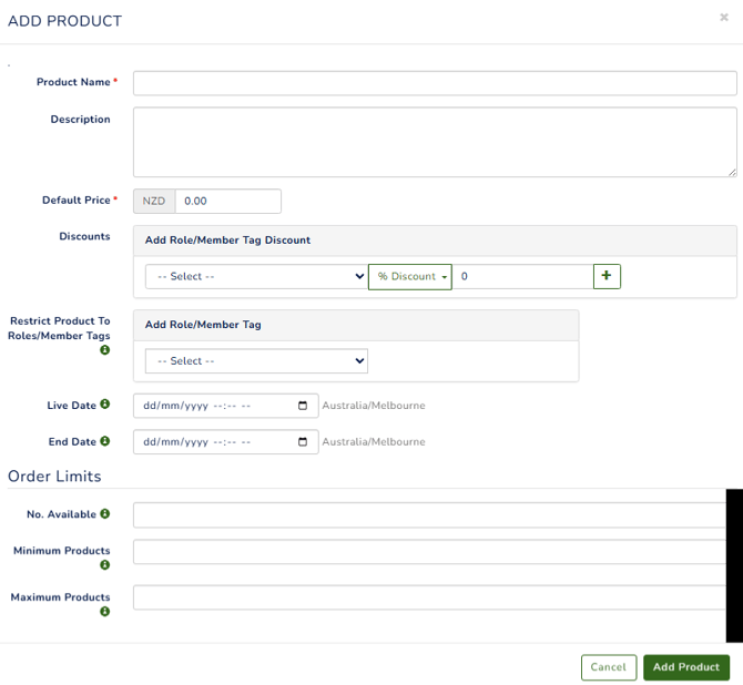 - Role/Tag: Select the role you wish to apply the discount to from the Role drop down box and