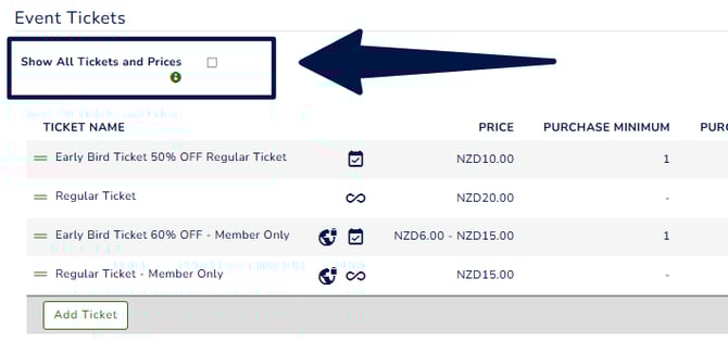 If ticked or enabled, this option will preview all active tickets, including restricted tickets available only to certain users.
