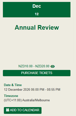 Note: if the event is also active and registrations are open the tickets will be available on your website instantly. Once your ticket is active it will be displayed with a green "Active Button"