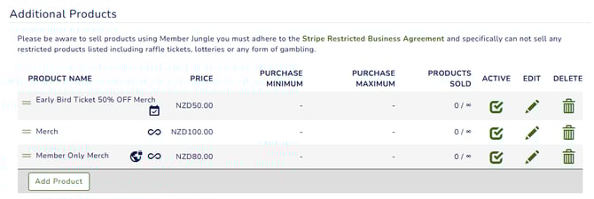 - You can also offer customers additional products to purchase in the same transaction as their tickets. The products which will be available to purchase on the next screen after a website visitor has chosen their tickets.
